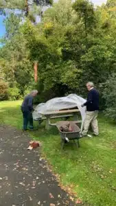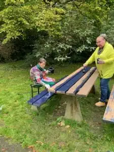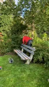Bijgaand een set foto’s van de harde werkers en de banken voor en na.